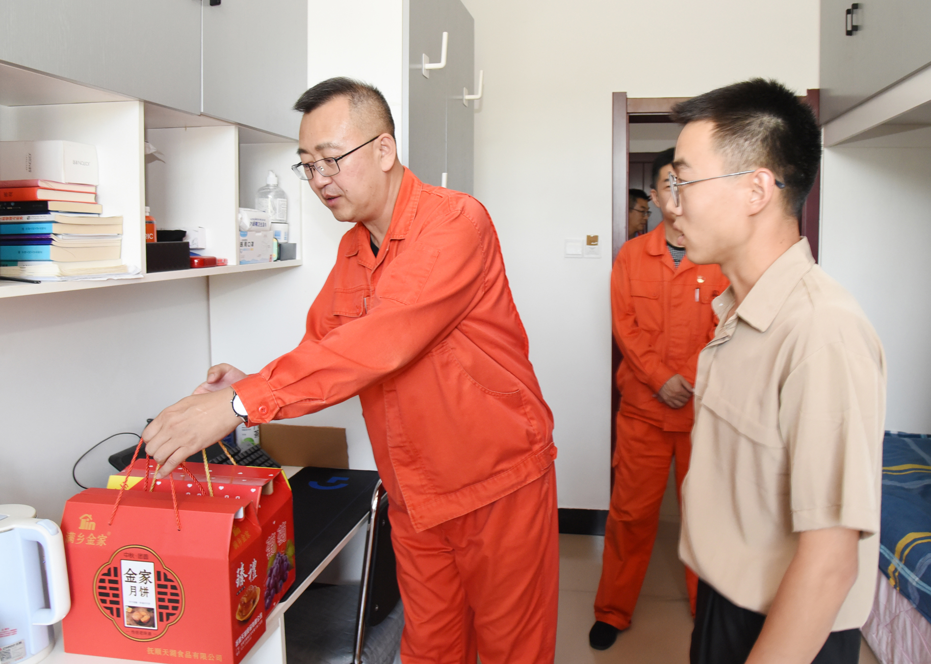月滿中秋,家好月圓。在中秋佳節(jié)即將來(lái)到之際,9月7日,撫順特鋼常務(wù)副總經(jīng)理、黨委副書記、紀(jì)委書記、工會(huì)主席祁勇帶領(lǐng)公司工會(huì)、組織人事處、后勤管理處相關(guān)人員來(lái)到大學(xué)生員工宿舍,走訪慰問(wèn)了住宿大學(xué)生員工。他們?yōu)榇髮W(xué)生員工送去了月餅、葡萄等中秋禮品,并送去了節(jié)日的問(wèn)候和祝福,讓大學(xué)生員工體會(huì)到了企業(yè)的關(guān)懷和溫暖。
