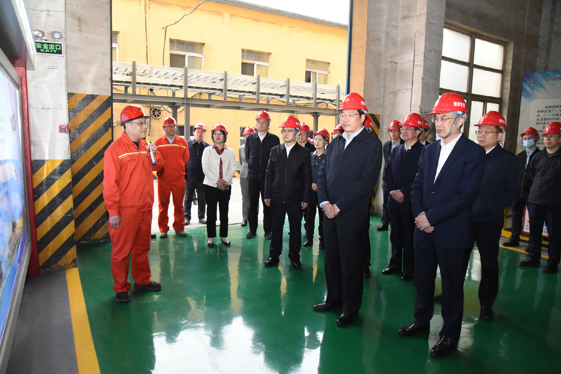 在第三煉鋼廠20噸自耗爐廠房?jī)?nèi),曹斌介紹了撫順特鋼歷史沿革、生產(chǎn)、技術(shù)、技改建設(shè)等情況,并重點(diǎn)介紹了企業(yè)混改重整以來(lái)的生產(chǎn)經(jīng)營(yíng)情況。他指出,沙鋼集團(tuán)將靈活、先進(jìn)的管理機(jī)制、管理理念與撫順特鋼企業(yè)文化相融合,通過(guò)強(qiáng)化經(jīng)營(yíng)體制、管理機(jī)制、薪酬制度改革等舉措,按照“特鋼更特、優(yōu)特結(jié)合”的發(fā)展戰(zhàn)略構(gòu)建了新的經(jīng)營(yíng)秩序,企業(yè)生產(chǎn)經(jīng)營(yíng)強(qiáng)勢(shì)回升,效益快速增長(zhǎng)。他表示,撫順特鋼要繼續(xù)做大、做強(qiáng)、做精以“三高一特”為代表的優(yōu)勢(shì)品種,并加快技改工程建設(shè),為企業(yè)持續(xù)發(fā)展奠定良好基礎(chǔ)。